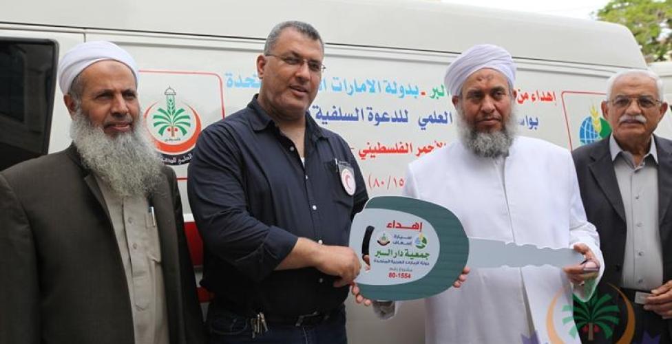 غزة-أمـانة الثقافة والإعـــــلام- قام المجلس العلمي للدعوة السلفية بفلسطين، بتسليم هدية 'سيارة إسعاف أم ماجد 'مشروع رقم: (1554/80) بتبرع كريم من المحسنة الأخت الفاضلة 'أم ماجد' وذلك بواسطة جمعية دار البر بدولة الإمارات العربية المتحدة لجمعية الهلال الأحمر الفلسطيني في غزة.