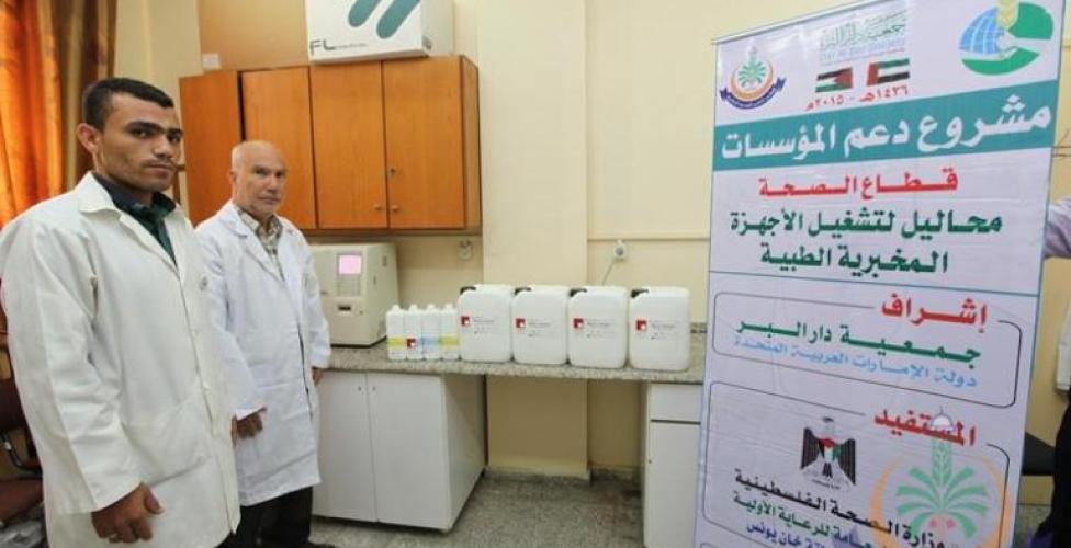 غزة- أمانة الثقافة والإعلام- قام المجلس العلمي للدعوة السلفية بفلسطين، بتقديم محاليل طبية لتشغيل الأجهزة المخبرية للإدارة العامة للرعاية الأولية –صحة منطقة خان يونس، بتمويل كريم من جمعية دار البر بدولة الإمارات العربية المتحدة.