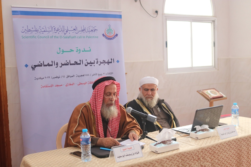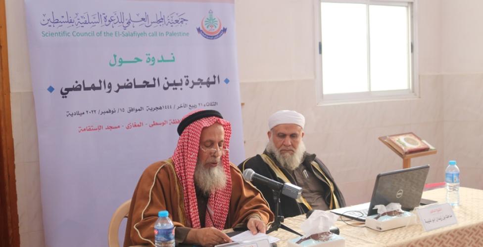 غزة-دائرة العلاقات العامة والإعلام-نظمت جمعية المجلس العلمي للدعوة السلفية بفلسطين، عصر أمس الثلاثاء، بمسجد الاستقامة بالمغازي في محافظة الوسطى، ندوة توعوية بعنوان: "الهجرة بين الماضي والحاضر".