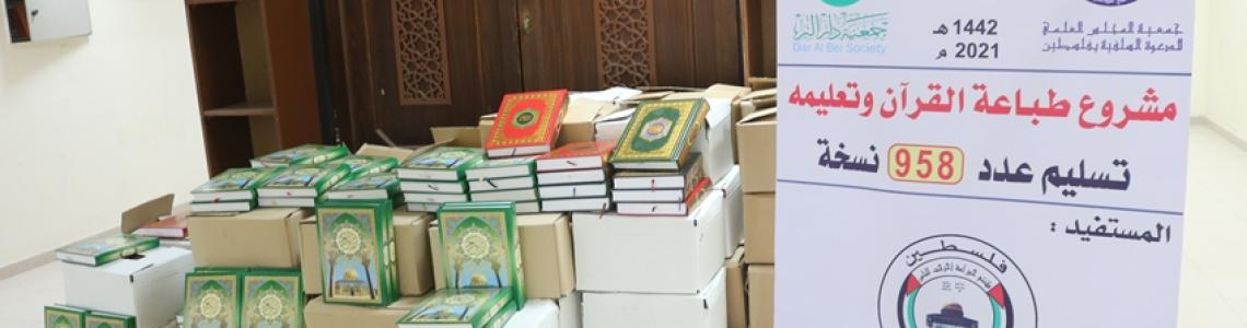 قامت جمعية المجلس العلمي للدعوة السلفية بفلسطين، ضمن مشروع مساعدة المؤسسات، بتقديم وتسليم وزارة الأوقاف والشؤون الدينية بغزة عدد (958) نسخة من المصحف الشريف، وذلك ضمن مشروع طباعة القرآن وتعليمه التي تشرف على تمويله "جمعية دار البر بدولة الإمارات العربية المتحدة".