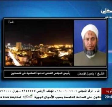 مداخلة الشيخ ياسين الأسطل عبر فضائية تلفزيون فلسطين في برنامج "تغطية خاصة"